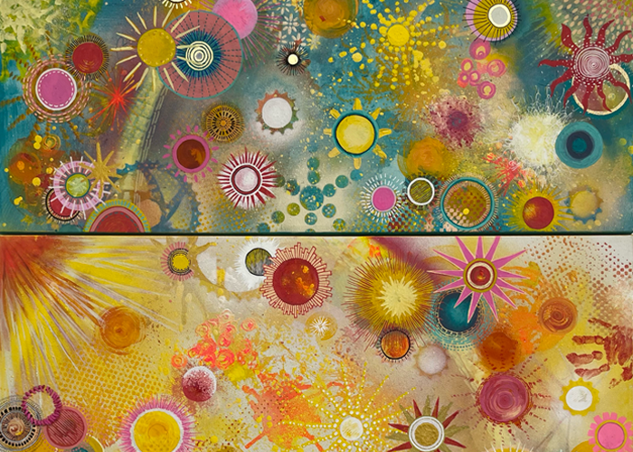 Sunspots, acrylic diptic, 2025